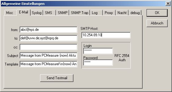 Die Zugangsdaten für den Versand über den Mailserver
